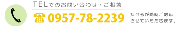 24時間いつでもお問い合わせ下さい TEL:0957-78-2239
